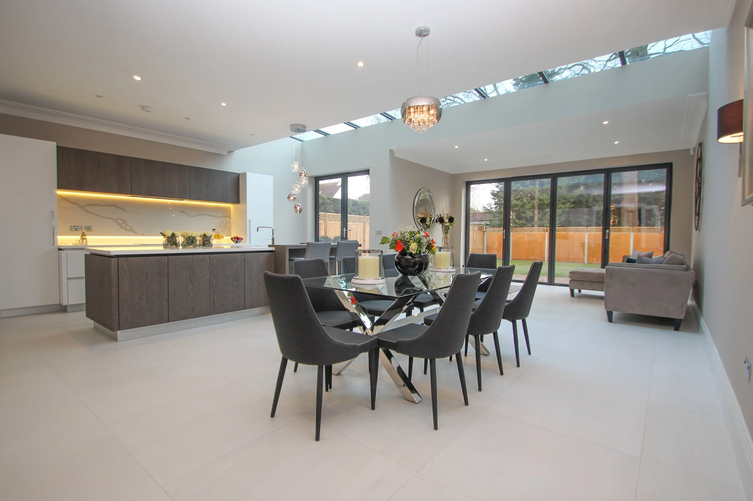 You are welcomed into the house by a double height entrance hallway, with views straight through to the garden. The large open plan kitchen area seamlessly integrates with the elegant external space.